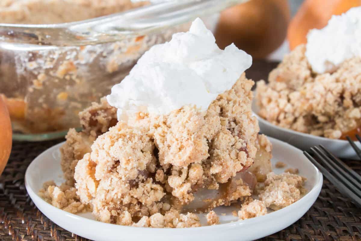 This crumble is best served warm with a scoop of vanilla bean ice cream or a dollop of fresh whipped cream.