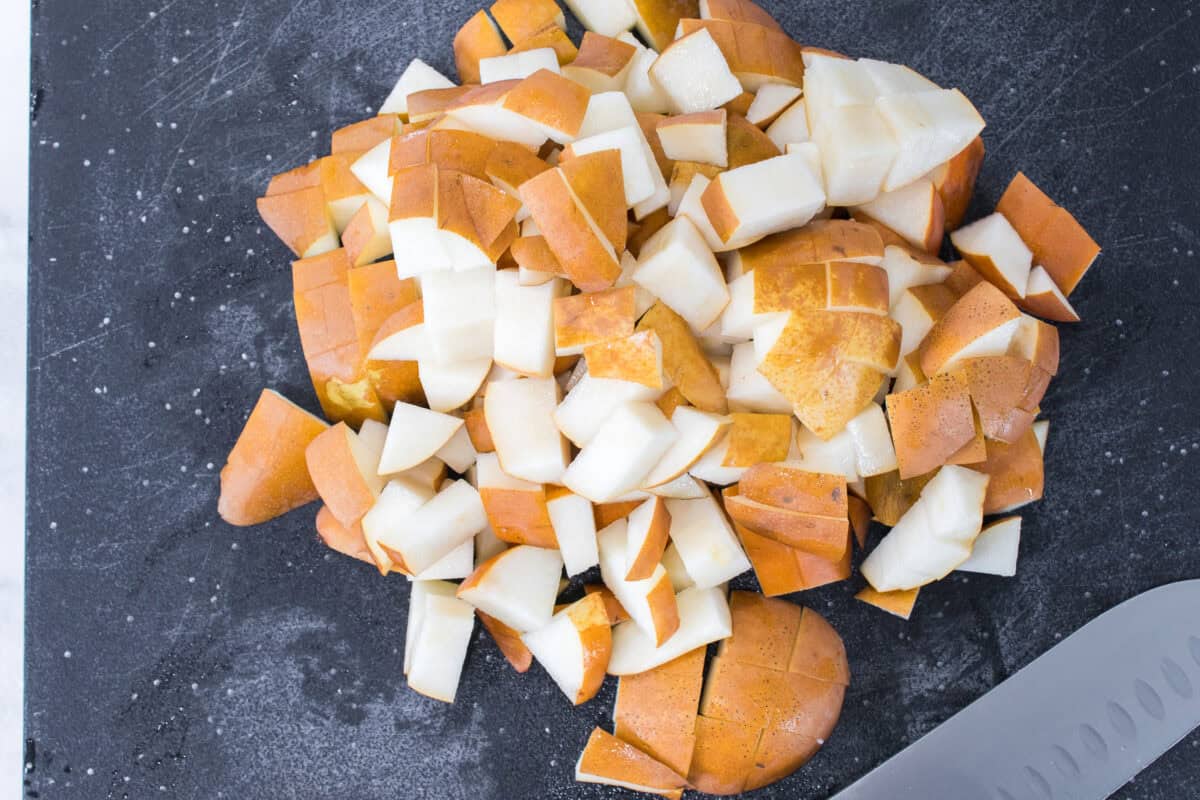 • 2 ½ lbs Bosc pears (6 large or 10-12 small pears, diced