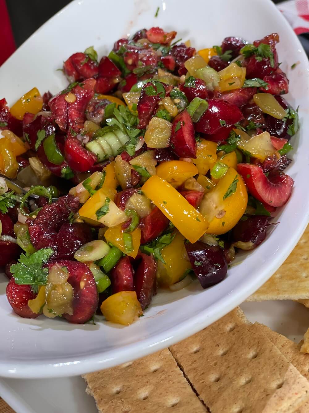 This Fresh Cherry Salsa is perfect for hot days when you need a cool, refreshing snack with a little kick. We’d love to dip some club crackers into this out by the pool. It’s also great on tortilla chips and makes a tasty topper for grilled meats.