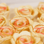 *If your apples do not soften enough to work with and do not want to bend when rolling them into rose shapes, heat them in the microwave for 30-45 seconds.
